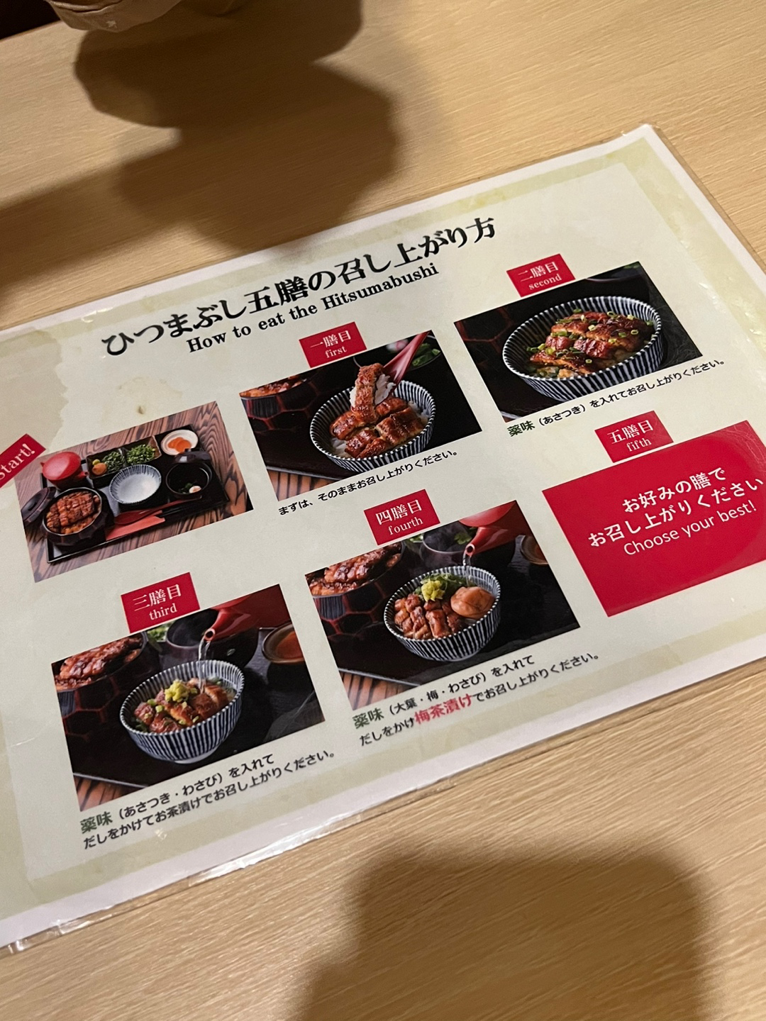 역시나 녹차를 주었고 히츠마부시를 먹는 방법이 나와있다.