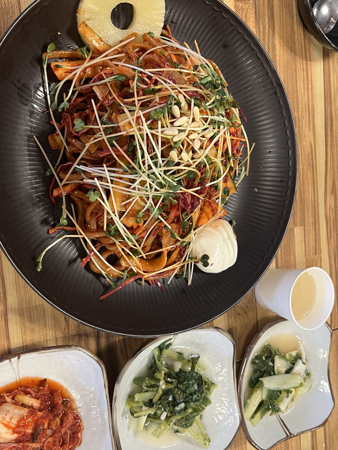 도토리국수는 쫄깃쫄깃해서(우동면과 떡 사이) 식감이 맛있었고 꾸덕한 쟁반국수였다. 여기서만 먹을 수 있는 도토리 국수라 한 번쯤 먹어보는거 추천!